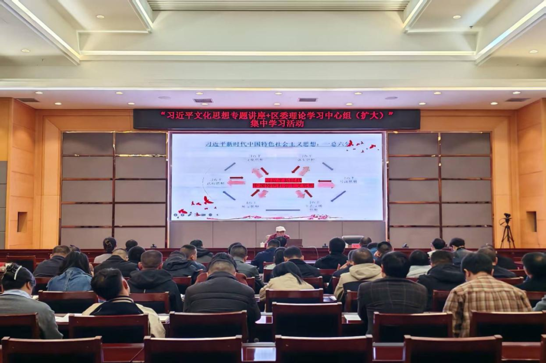 在“习近平文化思想专题讲座+区委理论学习中心组(扩大)”集中学习活动中,贵州大学马克思主义学院三级教授杨仁厚聚焦学习贯彻习近平文化思想,特别是习近平总书记关于“两个结合”的重要论述,以生动的案例进行深入浅出的解读,阐释了习近平文化思想的丰富内涵和实践要求。