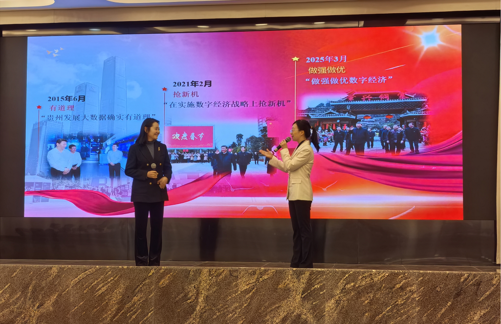 宣讲员刘超、刘炯生动讲述贵阳地铁发展变迁“十年”,勾勒贵阳地铁建设者以疾驰速度见证城市繁荣发展和坚守服务、传递民生温度的鲜活图景;何兴、罗倩围绕“贵州风采践嘱托文旅发展印初心”生动呈现贵州文旅锚定“资源、客源、服务”三要素,破解发展难题,迈向世界级旅游目的地的奋进征程;刘莉、尚亚丽聚焦基层治理“大家来商量”,细数基层党组织以“1655”工作模式践行全过程人民民主、倾听群众心声、做实做细群众工作的务实之举;王晓明、唐沁生动讲述“牢记嘱托抢新机,数智引领展风采”,呈现贵州牢记习近平总书记殷殷嘱托,以数据为关键要素、以算力为核心引擎,推动数字经济做强做优、赋能“数智贵州”建设的生动探索;徐雪、郭威以“手上春秋·青春作答”为题,讲述金融工作者在平凡岗位上坚守底线、传递为民情怀、彰显青年担当的暖心故事。五组宣讲员配合默契,通过真实案例、详实数据等把宏大主题讲具体、把深刻道理讲鲜活。