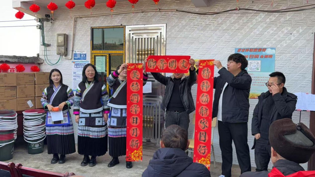 为深入学习贯彻党的二十届四中全会精神,积极培育和践行社会主义核心价值观,2026年1月29日下午,省社科联驻村工作队在帮扶点纳雍县玉龙坝镇箐脚社区开展“学习贯彻全会精神 引领树立文明新风”主题迎新春科普宣传活动。活动通过理论宣讲、表彰先进、文艺互动等形式,将党的政策传至群众心中,营造了热烈祥和、积极向上的节日氛围。
