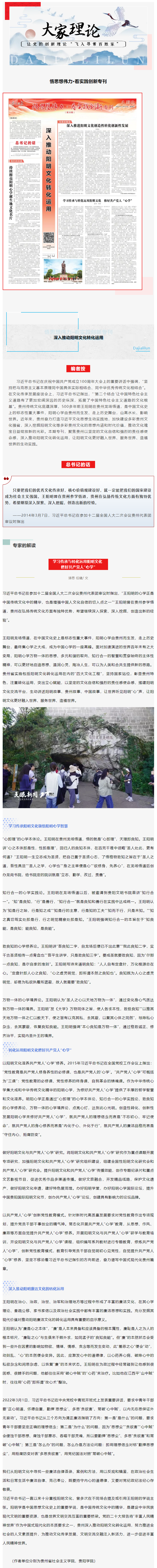 学习传承与转化运用阳明文化 修好共产党人“心学”