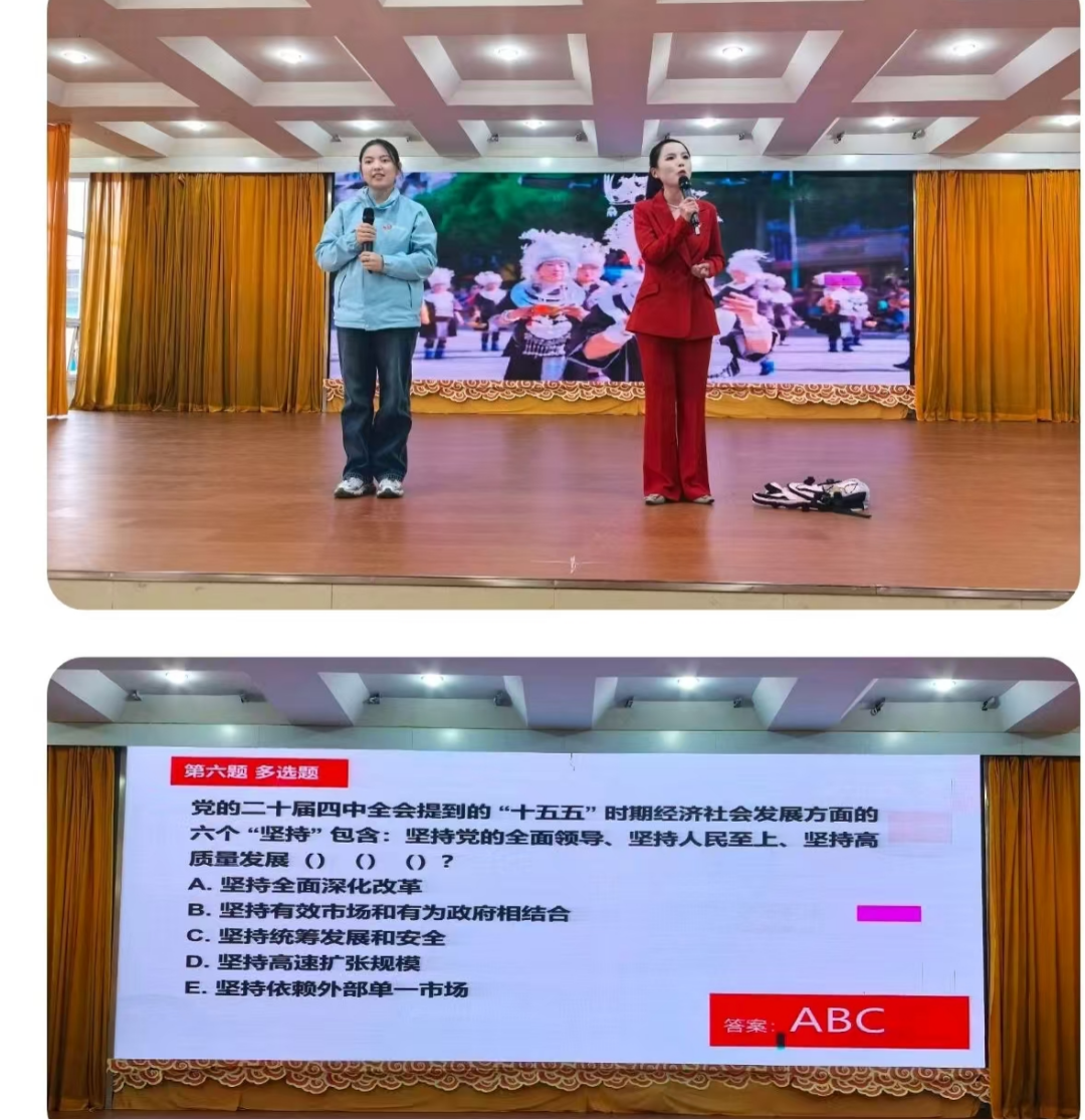在“社科理论知识+文艺”群众面对面普及活动中,运用“理论宣传二人讲”方式宣讲党的二十届四中全会精神,开展学习党的二十届四中全会精神现场抢答。