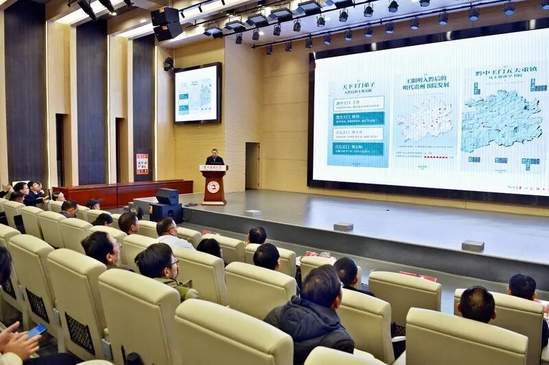 中央党校文史教研部中国史教研室主任、教授王学斌,浙江稽山王阳明研究院副院长、教授钱明,省社科联原党组书记、主席,原省文化厅党组书记、厅长,省首届核心专家徐圻,贵州大学阳明学研究中心主任、副教授张明,省中华文化研究会副会长李小龙,围绕“阳明文化研究与传播对推动中华优秀传统文化发展的现实价值;各地阳明文化研究、发展与转化的先进经验和成功模式对贵州的启示;新时代背景下,研究与发展阳明文化对助力贵州社会经济高质量发展的现实意义”等内容,作了精彩的主旨演讲。