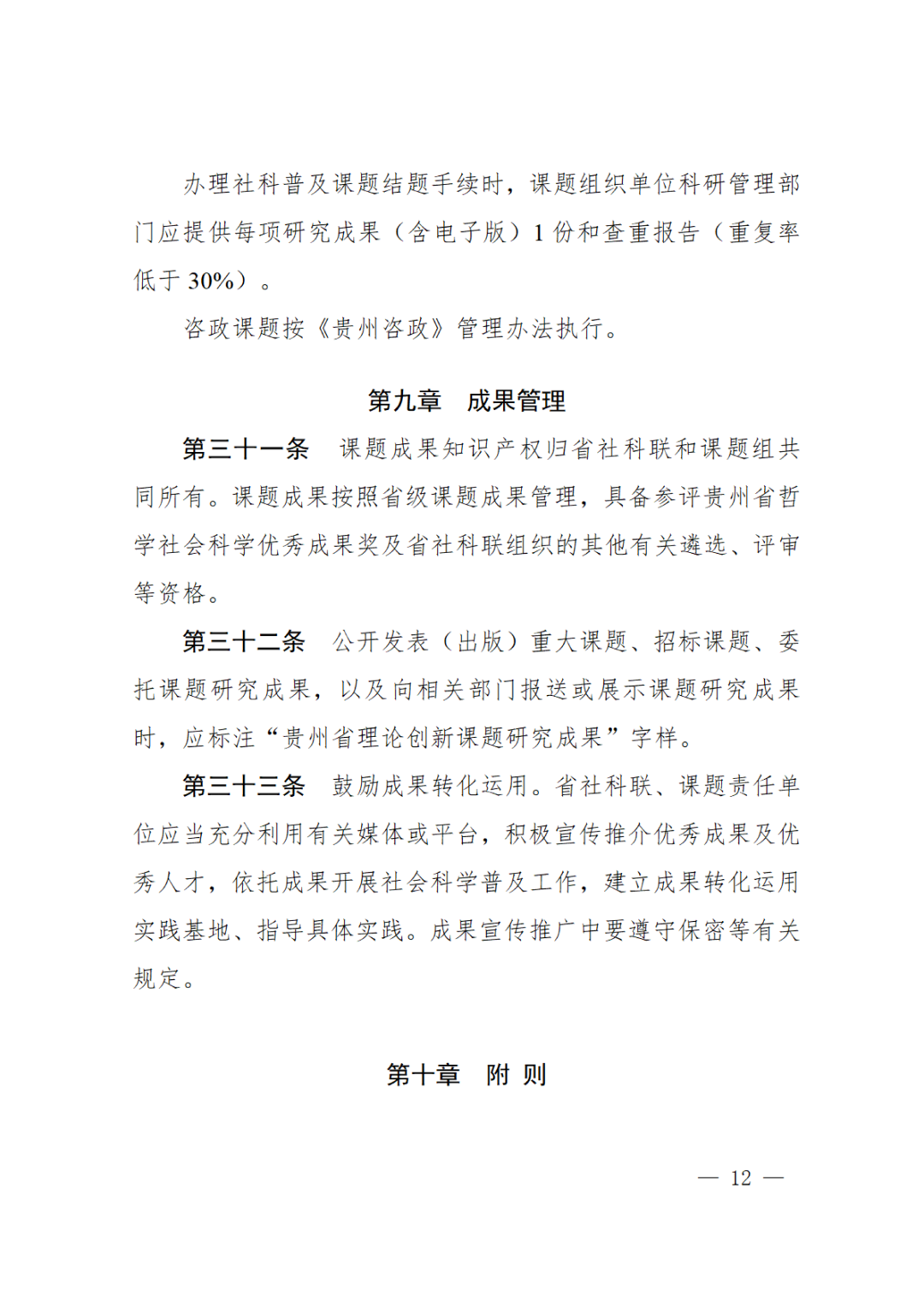 修订后的《贵州省理论创新课题管理办法》已经省社科联党组研究同意,现予以印发,请结合实际认真抓好落实。